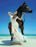 Алмазная вышивка «Девушка в белом и черный скакун» 40x50 см